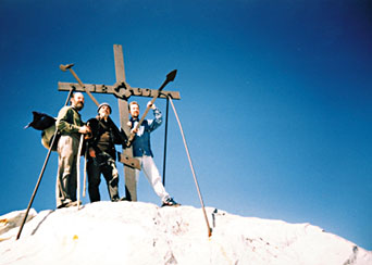 Неожиданно из-за скалы открывается долгожданная вершина. На ней – православный металлический крест. Отсюда в просветах облаков виден весь полуостров, на всем своем восьмидесятикилометровом протяжении. Светлые точки монастырей. Нас предупреждали: чтобы посмотреть вниз, придется буквально подползать к краю – порыв ледяного ветра может сбросить в пропасть. На самом же пике устоишь, лишь прочно держась за крест. Однако нам таких искушений не выпало. Ветерок совсем слабый, взятые с собой ватники ни к чему, тепло и в майках.