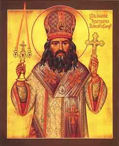 Михаил Максимович родился 4 июня 1896 г. в селе Адамовка, Харьковской губернии. Его предком был Святитель Иоанн, Митрополит Тобольский. Мальчик с детских лет проявлял горячую веру и желание посвятить себя служению Богу. Но по родительскому настоянию вынужден был учиться в Полтавском Кадетском Корпусе, а затем в 1918 закончить ещё и обучение на юридическом факультете Харьковского Университета. Во время Гражданской войны Михаил, вместе с семьёй, был эвакуирован в Югославию. Там в 1925 г. окончил богословский факультет Белградского Университета. В 1926 г. в сербском Милковском монастыре был пострижен в монахи с именем Иоанн, в честь св. Иоанна Тобольского. В том же году был рукоположен в иеромонахи, стал преподавателем Сербской семинарии в г. Битоле. Очевидцы свидетельствуют о том, что блаженный Иоанн постоянно молился, ежедневно служил Литургию, строго постился, пищу вкушал только один раз в день, со дня иноческого пострижения не спал лежа, а только сидя в кресле и ежедневно в 4 часа утра принимал холодную ванну. В 1934 г. Владыка был возведен в сан епископа, и назначен Синодом Русской Зарубежной Церкви в Шанхайскую епархию. Где он организовал строительство собора, больницы, приюта и других общественных заведений. Совершая все суточные богослужения ежедневно, находил время всегда посещать больных со святыми дарами, в любую погоду, бывало в полночь, или в три часа ночи часами мог молиться у постели безнадёжно больных. Лично собирал с улиц города бездомных детей. В созданном им приюте св. Тихона Задонского, нашли убежище 3500 детей. В 1949 г. со своей паствой, около 5000 беженцев из Китая, находился в лагере на Филиппинском острове, Тубабао. Владыка лично добился от Американского Конгресса изменения эмиграционного закона, и переселения всей паствы в США. В 1951 г. Синод назначил архиепископа Иоанна главой Западно-Европейской Епархии. Архиепископ Иоанн служил литургию в своей епархии на французском, голландском, греческом, китайском, английском языках. 2 июля 1966г., сопровождал чудотворную Курско-Коренную икону Знамения Божией Матери в г. Сиэтл, после литургии архиепископ скончался. В июне 1994 г. Архиерейский собор Русской зарубежной церкви прославил Владыку Иоанна в лике святых. Из воспоминаний духовных детей блаженного Иоанна: “Отец Иоанн был редким молитвенником. Он так погружался в тексты молитв, что создавалось впечатление, будто он беседует с Богом, Пресвятой Богородицей, ангелами...” “В 1939 году моя вера стала колебаться, решила больше не ходить в церковь, а пойти к знакомым. Мой путь лежал мимо собора, и вот я услышала в храме пение. Зашла в храм. Служил владыка Иоанн. Алтарь был открытым. Владыка произнёс молитву: “Придите, ядите, сия есть Кровь Моя... во оставление грехов”, после этого опустился на колени и сделал глубокий поклон. Я увидела Чашу со Святыми Дарами не покрытой, и в это время, после слов Владыки, сверху спустился огонёк в Чашу. Форма огонька была похожа на цветок тюльпана, но большего размера. Никогда в жизни своей не думала, что увижу действительно огнём освящение Даров. Загорелась снова у меня вера. Показал Господь мне веру Владыки, стыдно стало мне за моё малодушие”. (Мать Августа) “Я видел, как лицо его иногда буквально преображалось во время Литургии, особенно в дни Великого поста, сияя неземным светом, а глаза всегда полные божестве