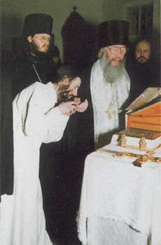 | Монашеский постриг. Целование ножниц | Иеромонах Владимир в пальто Серафима Саровского | |