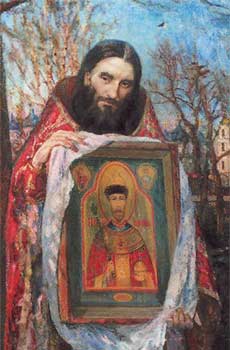 | Незадолго до кончины батюшки (иеромонах Владимир с сыном Арсением) | Портрет отца Владимира работы р.Б. Леонида | |