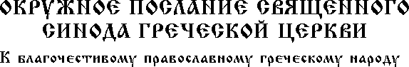 Священный Синод Греческой Церкви, по причине недавно начавшегося, с 8 декабря 1997 г, частичного исполнения Соглашения Шенгена по отношению к Греции, и ввиду грозящей опасности приведения в действие Соглашения в течение текущего 1998 года, обращается к вам, чтобы просветить и укрепить вас духовно, в связи с беспокойством и недоумениями, возникающими у многих с исполнением Соглашения.