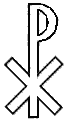"Комбинация (совмещенных) букв, известная под именем монограммы Константина, составленная из двух первых букв слова Христос - "Хи" и "Ро", - пишет литургист архимандрит Гавриил, - эта Константиновская монограмма встречается на монетах Императора Константина" (стр. 344).