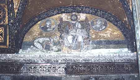 | Спаситель на престоле с припадающим к Нему Львом VI. Мозаика над входом в собор Святой Софии. IX в. |