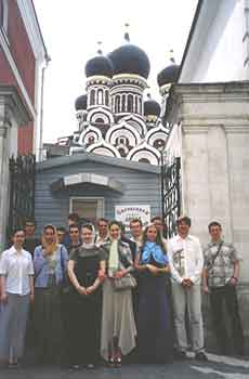 Мы совершили немало прогулок по святым местам Москвы. Посетили Марфо-Мариинскую обитель, основательницей которой была преподобномученица Елизавета; побывали в Высокопетровском, Данилове, Донском и Новоспасском монастырях, на подворье Болгарского Патриархата, где приложились к мощам святителя Тихона, чудотворным иконам Божией Матери Донской и "Троеручице". На подворье Соловецкого монастыря прослушали интересный рассказ одного из насельников о возрождении обители и о делах подворья. На Успение после праздничной службы гуляли в Кусковском лесопарке, а вечером пошли на службу в храм Успения Пресвятой Богородицы в Вешняках. Были в Коломне. Отстояли службу в Кафедральном соборе, а потом съездили в Иоанно-Богословский монастырь. Здесь мы не только приложились к частицам святых мощей и искупались в святом источнике, но и отведали вкусное монастырское угощение. На обратном пути заехали в коломенский Ново-Голутвин женский монастырь, где как раз в это день отмечался юбилей настоятельского служения игумении Ксении. По благословению матушки нас познакомили с историей восстановления монастыря и трудами его насельниц. В Петров пост провели благотворительную акцию "Христос в темнице" - по сбору средств, одежды и предметов первой необходимости для заключенных. Собрали 11 250 рублей; в мужские и женские колонии отправили большое количество посылок. Кроме того, некоторые ребята ведут переписку с заключенными. В начале августа выезжали на природу в Бронницы: готовили шашлыки, пели песни, устроили эстафету, играли в волейбол, бадминтон, перетягивали канат, купались в теплых водах ближайшего озера. Осень началась со знакомства с Православным молодежным объединением "Молодая Русь" и совместной дискуссии на тему "Что есть счастье?". 5 сентября нас пригласили в Зал Церковных Соборов храма Христа Спасителя на церемонию вручения премии "Обретенное поколение" за труды по духовно-нравственному воспитанию и просвещению молодежи. Наградили и наших новых друзей из "Молодой Руси". Церемония завершилась небольшим концертом. |