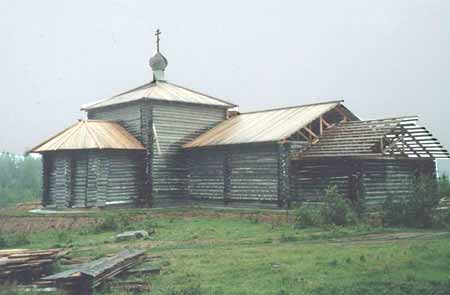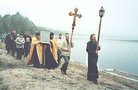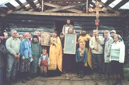 При выходе из леса нам открылся вид на возрождающийся храм Святителя Митрофана. Особенно поразило и обрадовало, что, хотя при прошлом посещении пустыни здесь было всего несколько венцов сруба, всего за год братии удалось завершить здание храма, над которым уже красуется изящная луковка с крестом. Правда, впереди еще работы по внутренней отделке. Из принесенных крестным ходом икон в храме собрали иконостас. Игумен Иларион торжественно совершил молебен с акафистом и всех молящихся помазал елеем, освященным на мощах святителя. Каждому вручили также акафист и иконку святого. В Петербург мы возвращались с радостным чувством - словно на Карельской земле пережили встречу с самим святителем Митрофаном Воронежским. В.В. Пономаренко, |