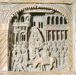 Венчающие крест цветы символизируют цветы райские и венцы спасения. На рукояти вырезан плетеный шар, благодаря которому рука священника не скользила по дереву (такими крестами благословляли - отсюда их название "воздвизальные"). Крест удерживают два льва. С древних времен лев являлся символом сильного, неустрашимого и бдительного стража. Так, царь Соломон поместил изображения львов в выстроенном им храме в знак постоянной охраны святыни (3 Цар. 7. 29, 36). Крест, выполненный афонскими мастерами, предназначался для особо торжественных церковных служб. Подобные кресты хранились в ризницах либо на престолах, поэтому их именовали также напрестольными. Крестом благословляли, к нему возносили молитвы, его чествовали, лобызали, его воспевали: "Солнцезрачен видится, поклоняемый от верных человеков Крест Господень, егоже целующе, душами просвещаемся" (канон предпразднства Воздвижения Креста). Елена Васильевна Крохина |