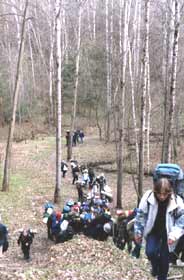 В этом году перед майскими праздниками на нашу страну обрушились ливни, ветры и морозы. Но непогоде не удалось помешать осуществиться задуманному - и весенний поход-2004 для августовской смены лагеря "Богослово" состоялся! 1 мая в 7.30 на Белорусском вокзале собрались все его участники во главе с Виктором Евгеньевичем и Феодосием Вячеславовичем. Тут же на скорую руку прошла разбивка на отряды - всего их получилось семь. Выстроившись в длинную колонну, отряды зашагали к поезду.