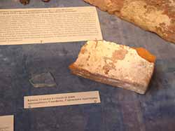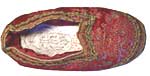 Другой бесценный экспонат, пополнивший наше собрание,- бархатная туфля с мощей (правой стопы) святого апостола Андрея Первозванного, шитая в конце XX в. Внутри нее - графически выполненный образ апостола Христова. Эта святыня привезена из Сербии и происходит из греческого монастыря Святого Андрея, расположенного в селении Ператата на острове Кафалония (Каталония).