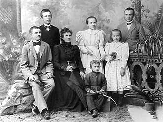 Мария Матвеевна с детьми. Слева направо стоят Яков, Ольга, Александра, Роман; сидят Мстислав и Михаил |