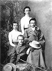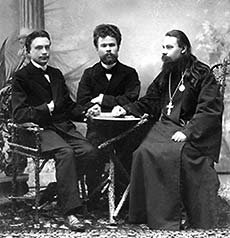 | Инспектор семинарии о. Е. Розов, надзиратель семинарии Владимир Ходкин,помощник инспектора Роман Иванович Медведь (слева). Вильна | Роман Иванович и Анна Николаевна Медведь. 1901 г. | Отец Роман с матушкой (справа), сестрой Ольгой и Николаем Адамовичем Семенякой (впоследствии епископом Минским Феофаном). | ||