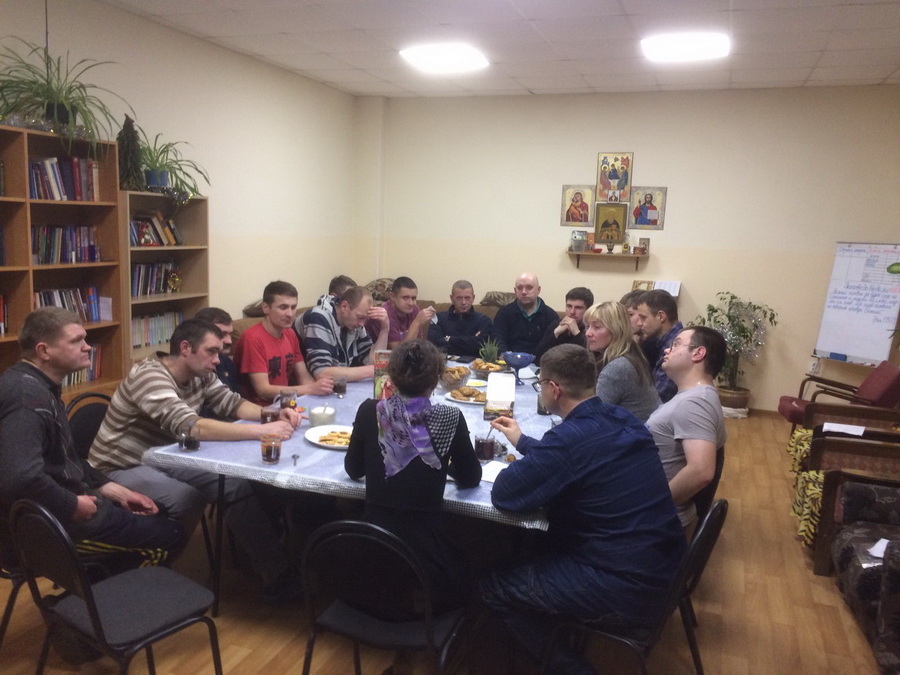 На Святочной неделе поздравить воспитанников центра приехали друзья - добровольцы социального отдела епархии и выпускники центра. Традиционно отслужив молебен, о. Евгений Довгаль пожелал всем помощи Божией в благих начинаниях наступившего года. За совместной трапезой гости исполнили Рождественские колядки, познакомив гостеприимных хозяев с доброй традицией праздника - славлением родившегося Христа. После этого зазвучали строки из стихотворения, написанного одним из добровольцев и посвященного Рождеству. В них слышалась детская восторженность и радость, умело передаваемые читавшим стихотворение автором. И словно проникнувшись детской непосредственностью, все участники этой Святочной встречи с удовольствием включились в любимую игру "Крокодил", без которой не обходится ни один приезд волонтеров. Вот уж тут повеселились от души, и если бы не наступившая поздняя пора, еще долго не смогли бы расстаться.