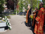 Клирики храма Покрова Богородицы возложили цветы к памятнику герою Великой Отечественной войны
