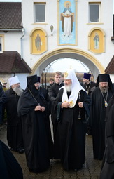 Затем в сопровождении настоятельницы обители Святейший Патриарх Кирилл посетил монастырский храм в честь святителя Спиридона Тримифунтского и ознакомился с ходом строительства храма в честь преподобномученицы великой княгини Елисаветы.