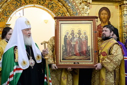 В дар новоосвященному храму Святейший Владыка передал икону жен-мироносиц. «Это те женщины, которые окружали Спасителя во время Его земной жизни, которые не убоялись ни преследований римских властей, ни гонения со стороны иудейских правителей также, которые до самого креста шли со Христом, — отметил Предстоятель Русской Церкви. — И когда читаешь о подвиге жизни этих замечательных женщин, невольно вспоминаешь тот период времени, в историческом отрезке которого были многие гонения на нашу Церковь, особенно в XX веке, когда многие мужчины сильные, образованные, даже занимавшие видное положение, боялись проявлять свою религиозность, а вера в народе сохранилась благодаря женам-мироносицам».