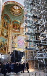 По завершении собрания духовенства Калининградской митрополии Святейший Патриарх Московский и всея Руси Кирилл ознакомился с ходом росписи интерьера кафедрального собора Христа Спасителя в Калининграде.